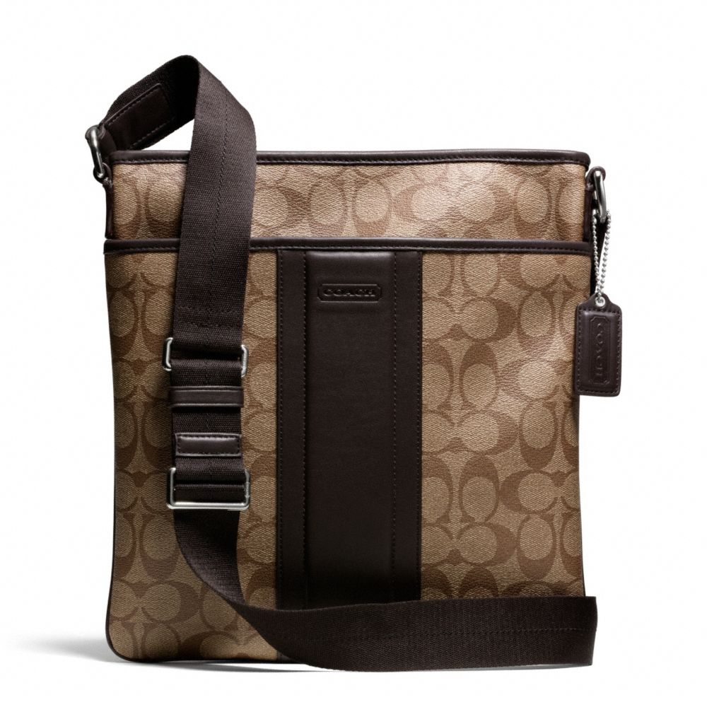 1. COACH f71131 - HERITAGE SIGNATURE SMALL ZIP TOP CROSSBODY - SILVER/KHAKI/BROWN