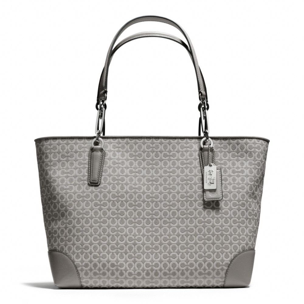 1. COACH f26767 - MADISON NEEDLEPOINT OP ART EAST/WEST TOTE - SILVER/LIGHT GREY