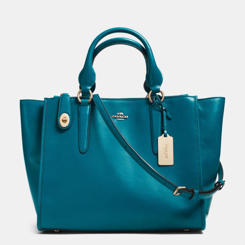 1. COACH f33545 - CROSBY CARRYALL IN LEATHER - LIGHT GOLD/TEAL