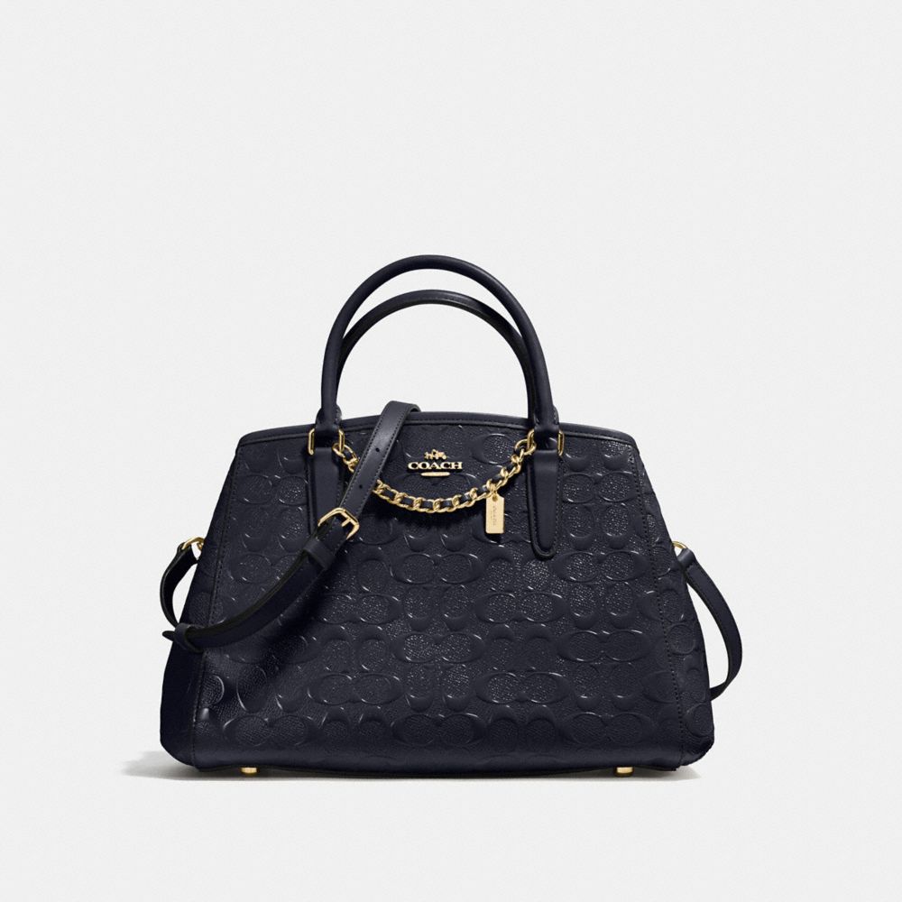 1. COACH f55451 - SMALL MARGOT CARRYALL IN SIGNATURE DEBOSSED PATENT LEATHER - IMITATION GOLD/MIDNIGHT
