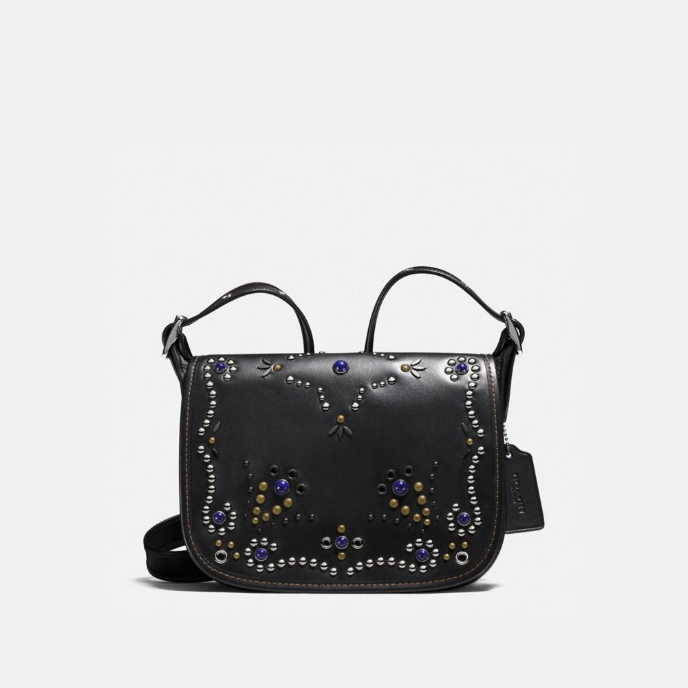 1. COACH f59351 - PATRICIA SADDLE BAG 23 IN NATURAL REFINED LEATHER WITH ALL OVER STUDDED EMBELLISHMENT - SILVER/BLACK