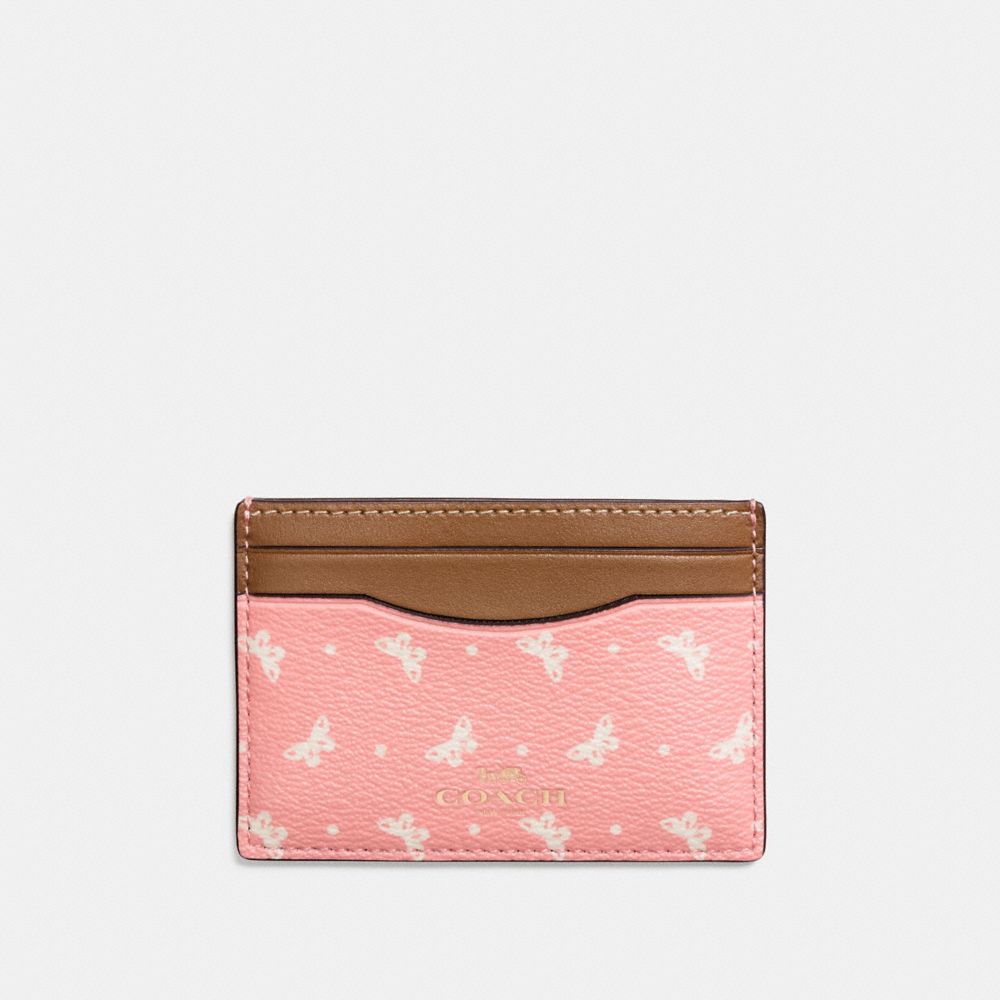 1. COACH f59787 - FLAT CARD CASE IN BUTTERFLY DOT PRINT COATED CANVAS - IMITATION GOLD/BLUSH CHALK