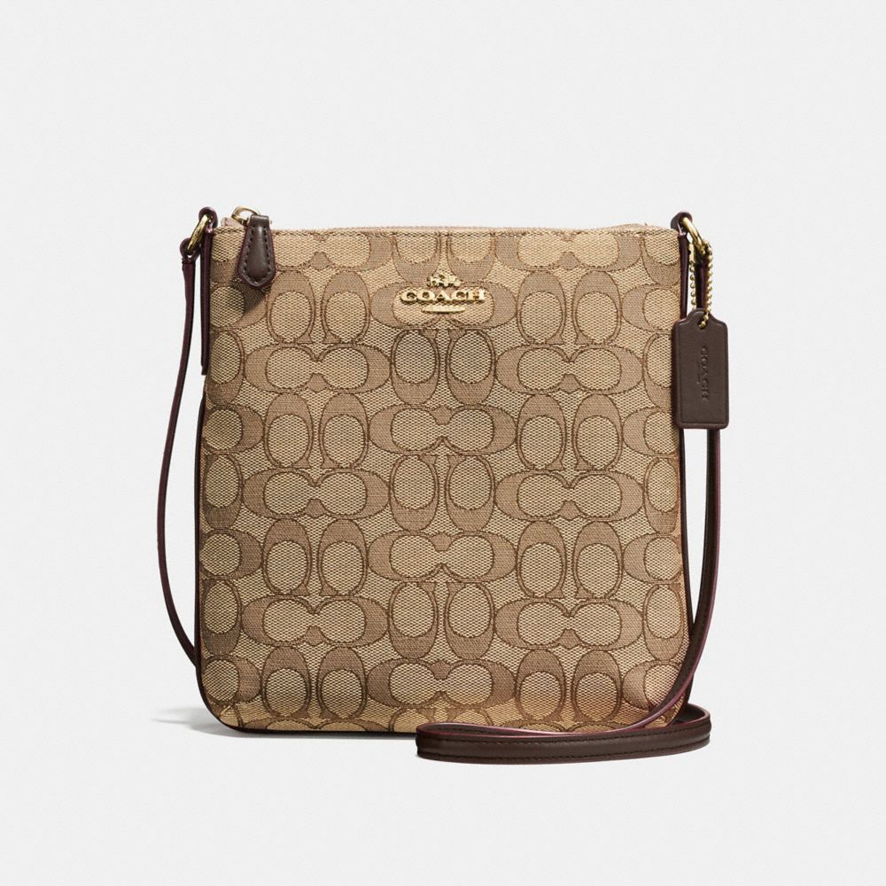1. COACH f58421 - NORTH/SOUTH CROSSBODY IN OUTLINE SIGNATURE JACQUARD - IMITATION GOLD/KHAKI/BROWN