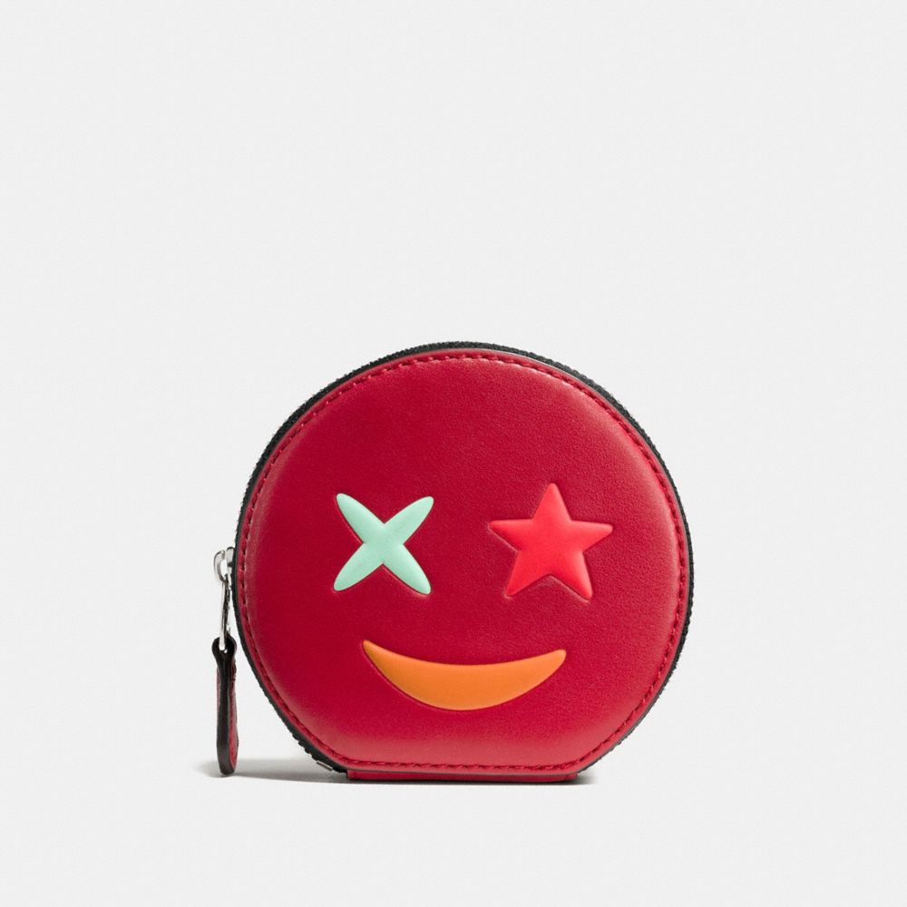 1. COACH f11730 - COIN CASE IN REFINED CALF LEATHER WITH STAR - SILVER/TRUE RED