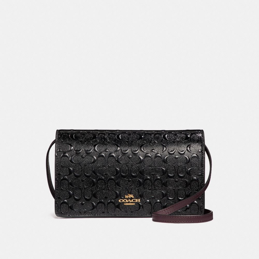 1. COACH f15620 - FOLDOVER CROSSBODY CLUTCH IN SIGNATURE DEBOSSED PATENT LEATHER - LIGHT GOLD/BLACK