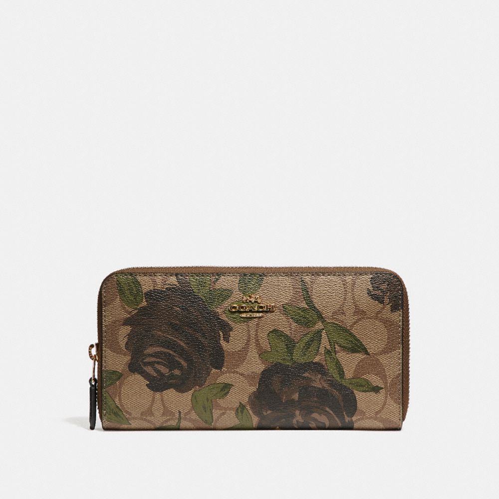 1. COACH f26290 - ACCORDION ZIP WALLET WITH CAMO ROSE FLORAL PRINT - LIGHT GOLD/KHAKI