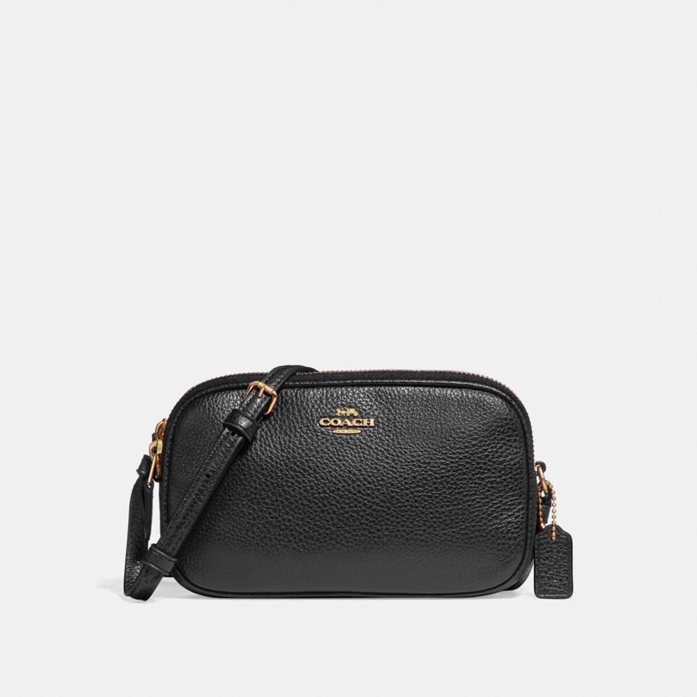 19. COACH f58032 - CORNER ZIP WRISTLET IN CROSSGRAIN LEATHER - IMITATION GOLD/BLACK