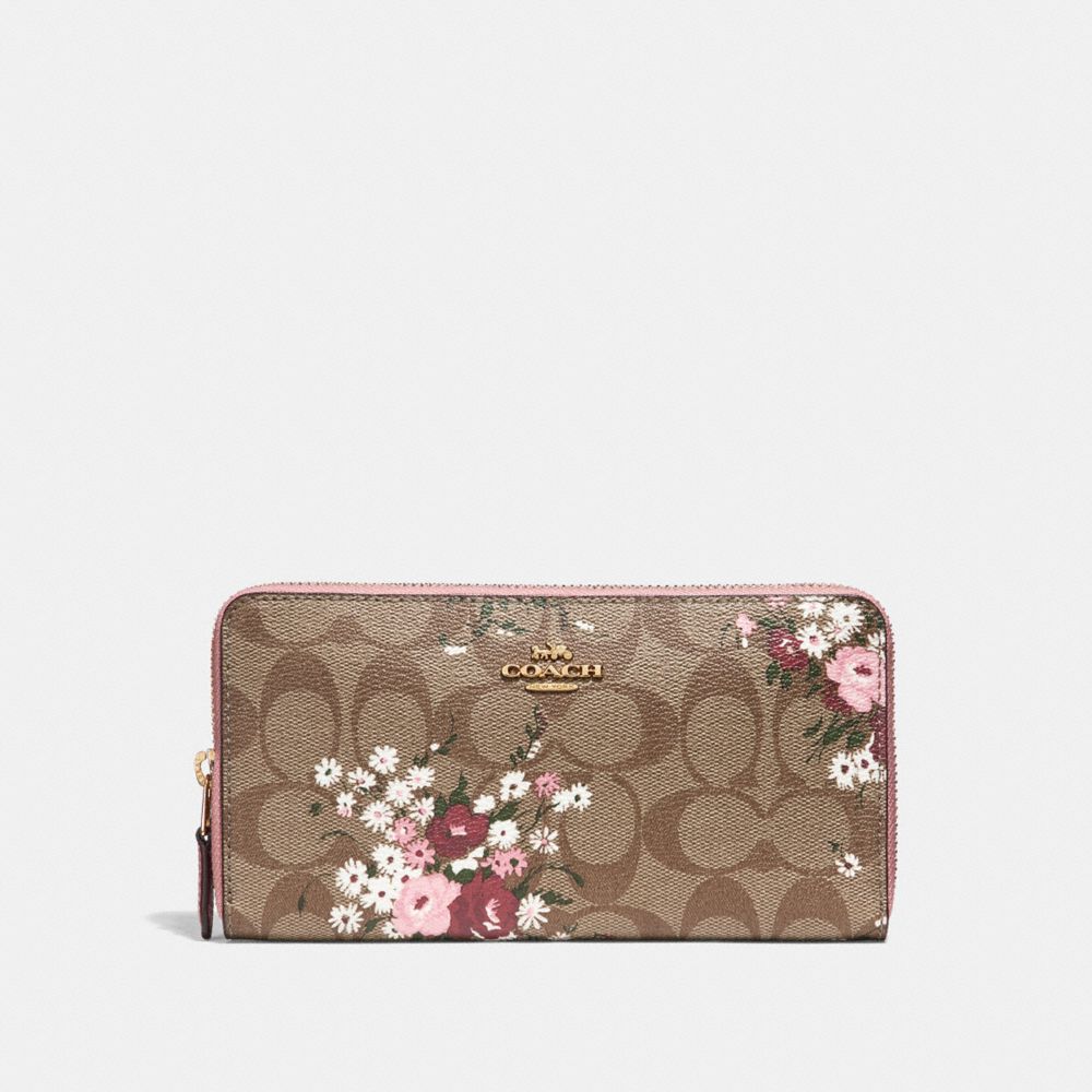 1. COACH f29931 - ACCORDION ZIP WALLET IN SIGNATURE CANVAS WITH FLORAL BUNDLE PRINT - khaki/multi/imitation gold