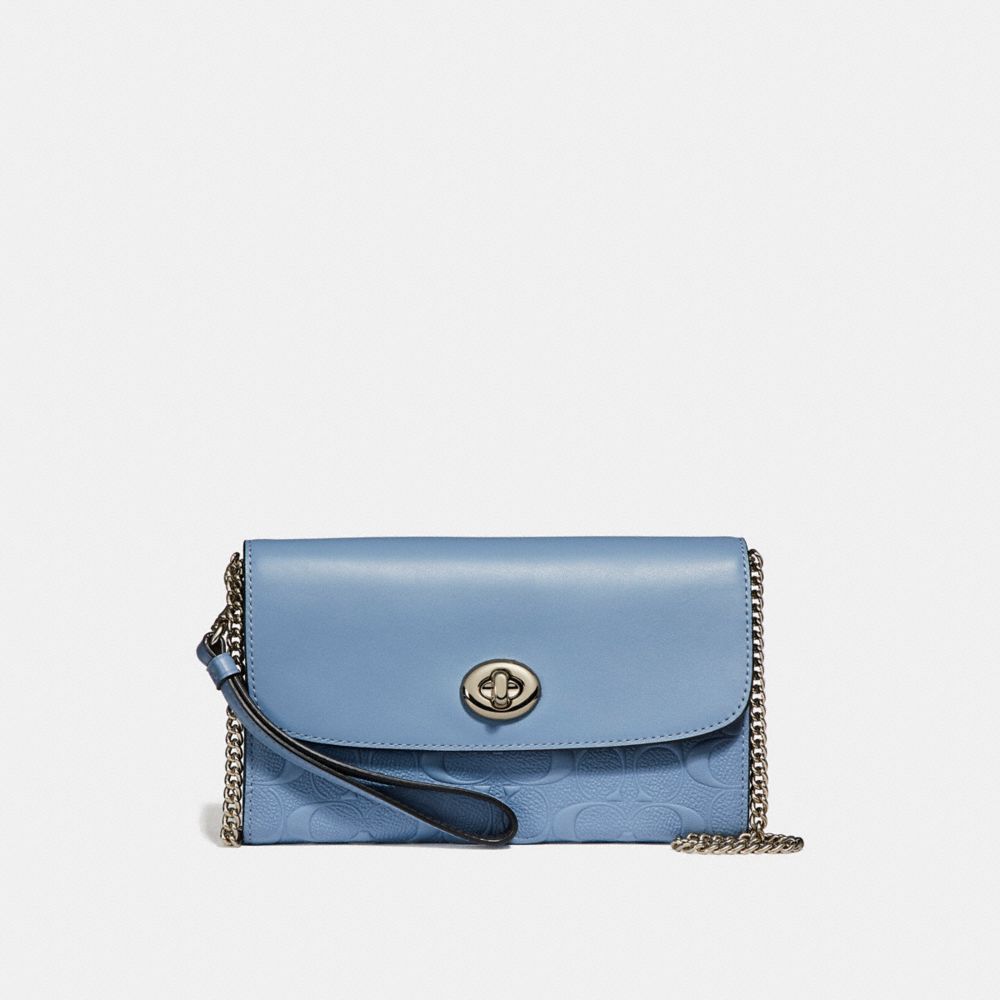 1. COACH f24469 - CHAIN CROSSBODY IN SIGNATURE LEATHER - SILVER/POOL