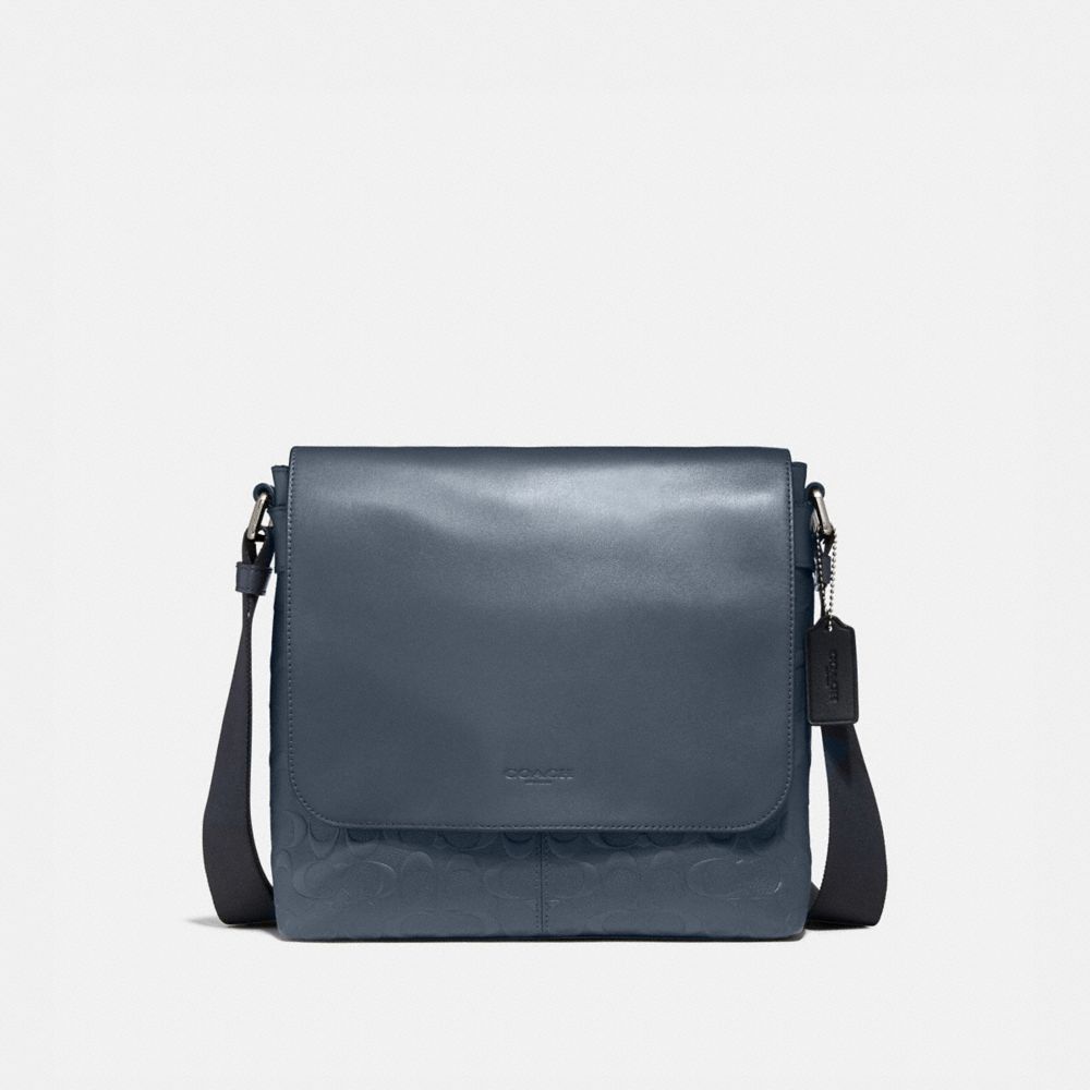 1. COACH f28577 - CHARLES SMALL MESSENGER IN SIGNATURE LEATHER - Midnight Navy/NICKEL